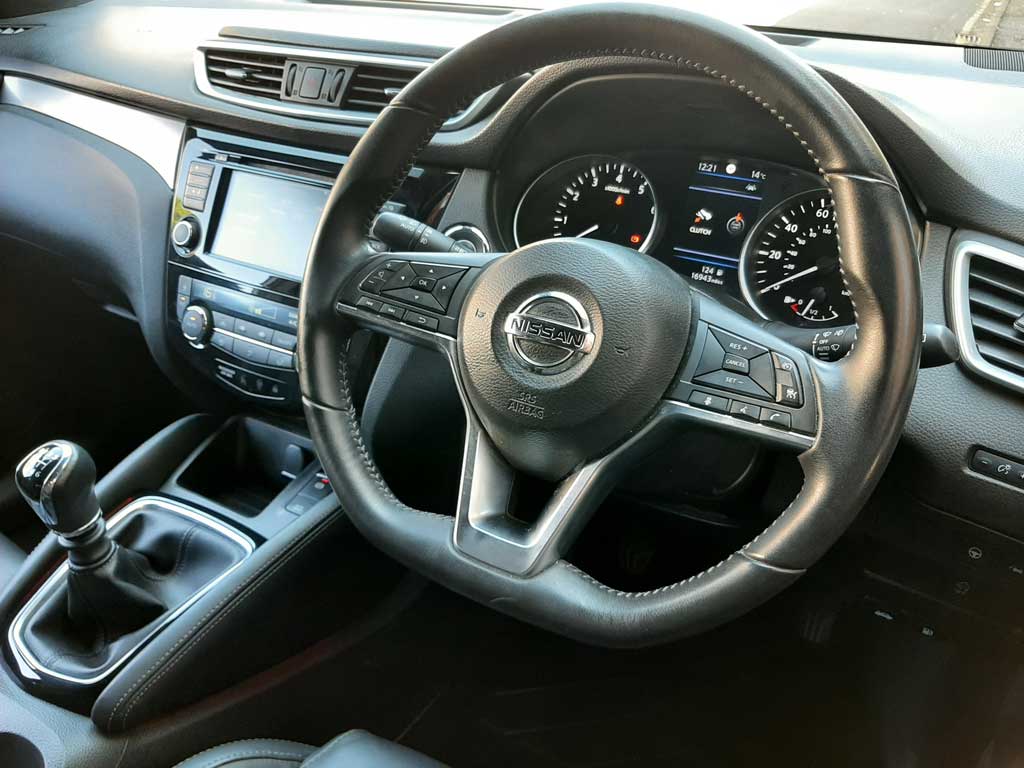 It is the 1.3 litre,138bhp petrol engine/manual gearbox, Tekna+ model fitted with:- panoramic glass roof; Nissan Advanced Drive Assist Display, featuring a 5" TFT colour screen with 360 degree cameras, DAB/CD/sat-nav/bluetooth stereo with eight BOSE Premium Audio speakers and with steering wheel mounted controls; dual zone climate control; electrically adjustable heated front seats with memory fuction connected to auto-folding electric door mirrors; auto wipers, autohillhold electic hand brake, cruise control, auto LED Daytime Running Lights, electric windows, Thatcham Category 1 Alarm/Immobiliser.