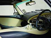 Mendip blue metallic with navy blue roof and carpets, magnolia half hide. Fitted with Power Assisted Steering,