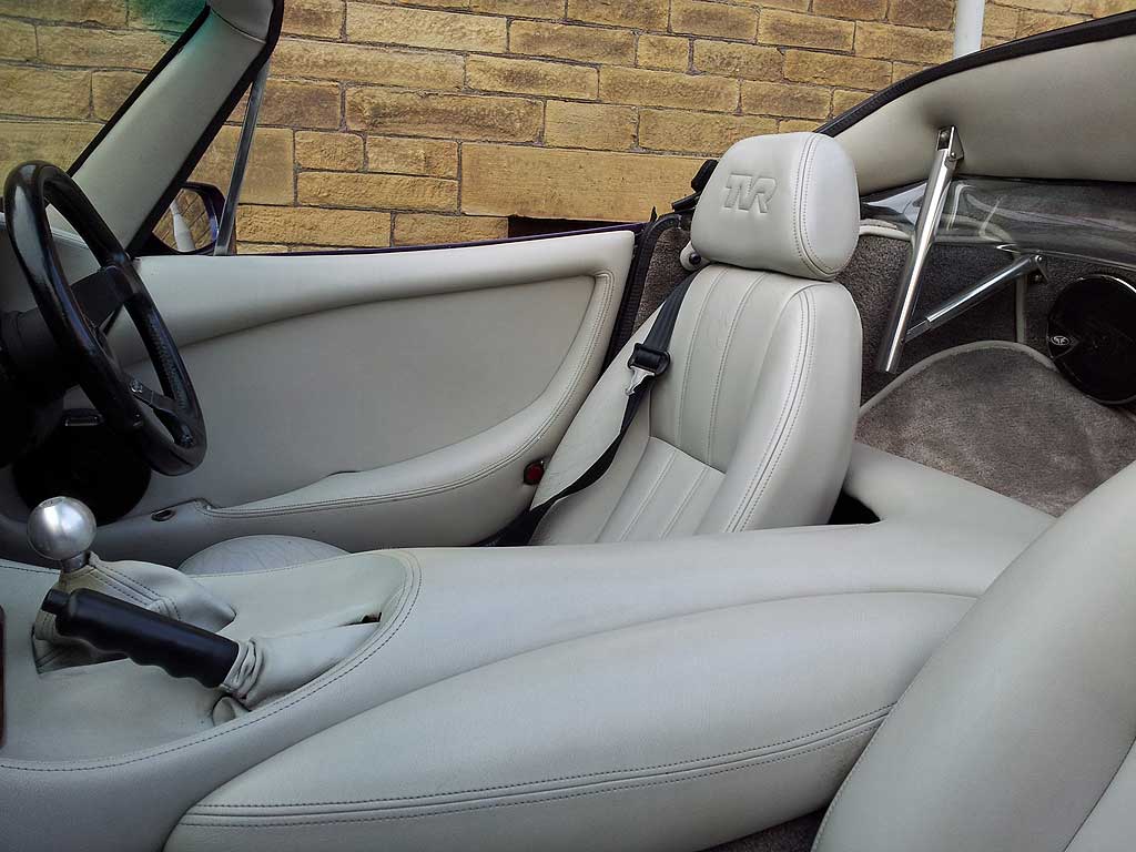 Amaranth pearlescent with portland half hide, grey carpets and black roof. Fitted with PAS, alloys, radio/6CD and four speakers, remote central locking and alarm. Three owners, 17 service stamps, Gaz Gold suspension, new RTRacing Outriggers.